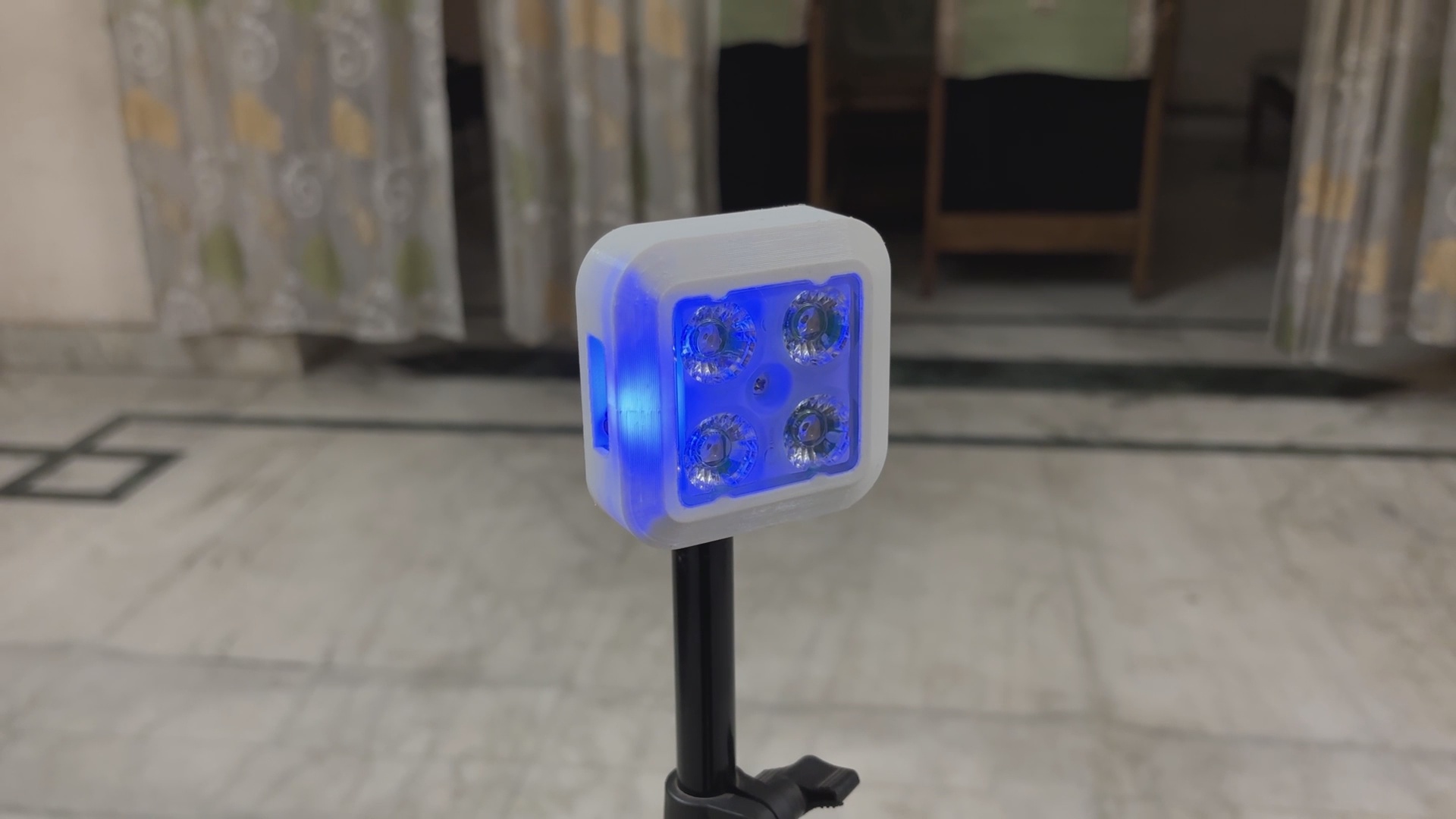 Here's the end result of this build, the Portable Studio Light, a fully functional, travel-friendly RGB lighting solution designed for creatives who move between workspaces. Built from the ground up with an ESP8266 microprocessor, four WS2812B LEDs, a custom-designed 3D-printed body, and a unique lens.