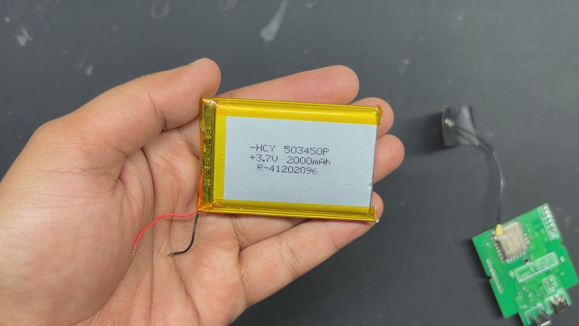 This project's power source is a 3.7V 2000mAh LiPo cell. We begin the power source assembly process by connecting the Lipo cell's positive and negative terminals to the Battery CON2 port of the IP5306 IC.