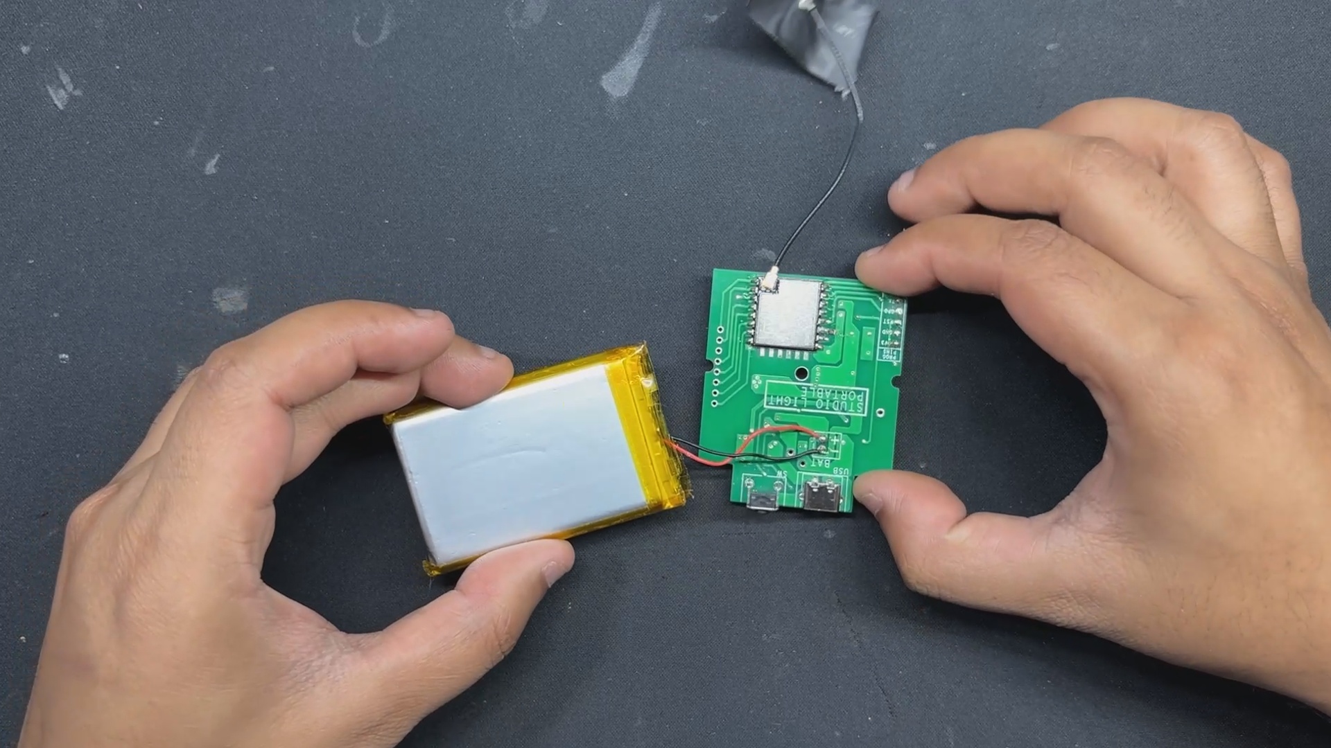 We attached double-sided thermal tape to the rear side of the circuit, which has an exposed ESP12F module, to isolate it from the battery, as the battery is located on the back side of the circuit.