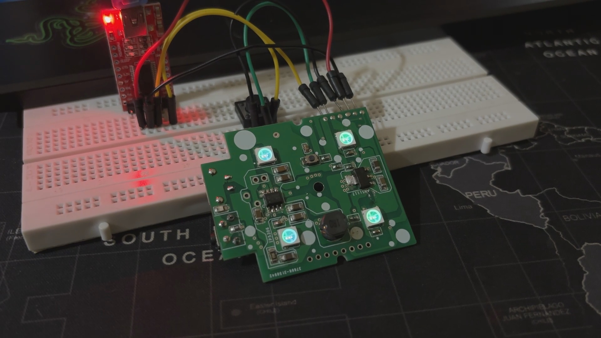 All of the through-hole components, including the Type C Port and Right angle Push button, were installed on the bottom side according to the mounting dimensions provided in the design. The mounting hole in the middle was also added by following the dimensions from the 3D model, as was the placement of RGB LEDs.