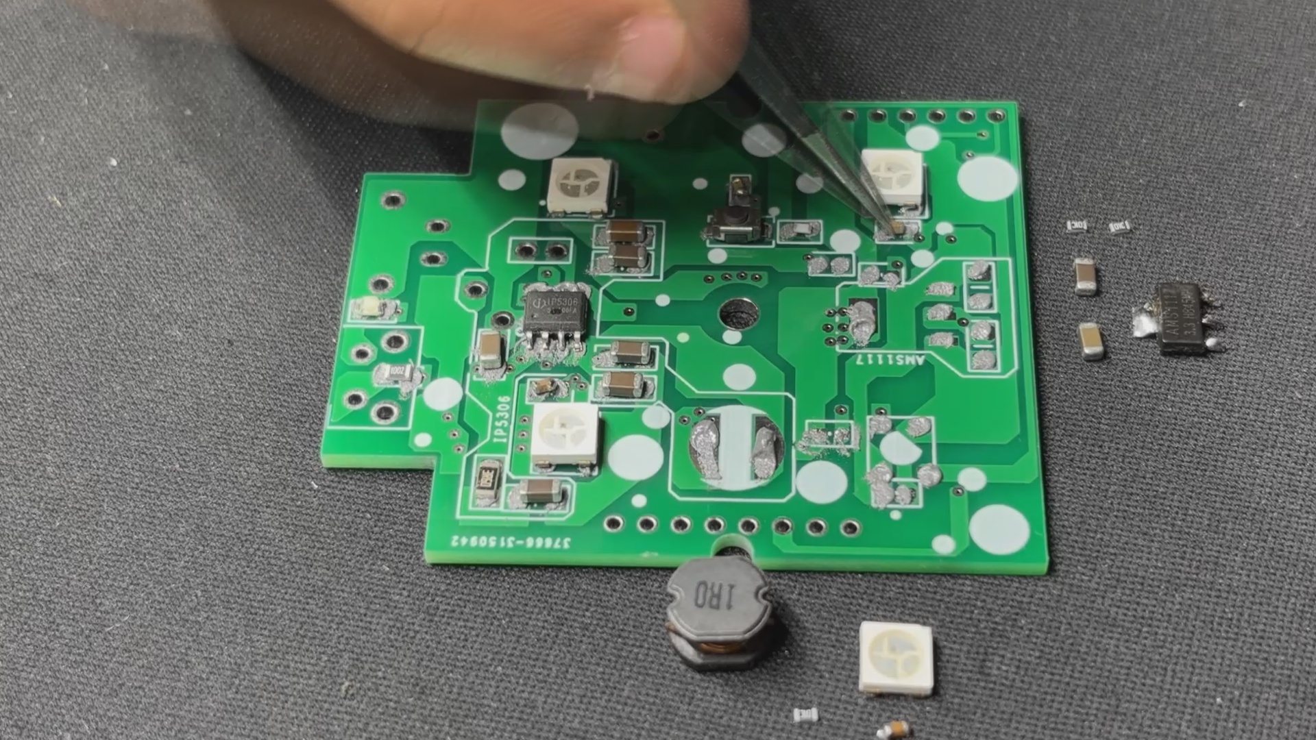 Next, we use an ESD tweezer to choose and arrange all SMD components on the top side of the board.