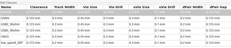 After we dial in these values in the Board Setup, we are ready to route the differential pairs. KiCad has some nice tools to do this.