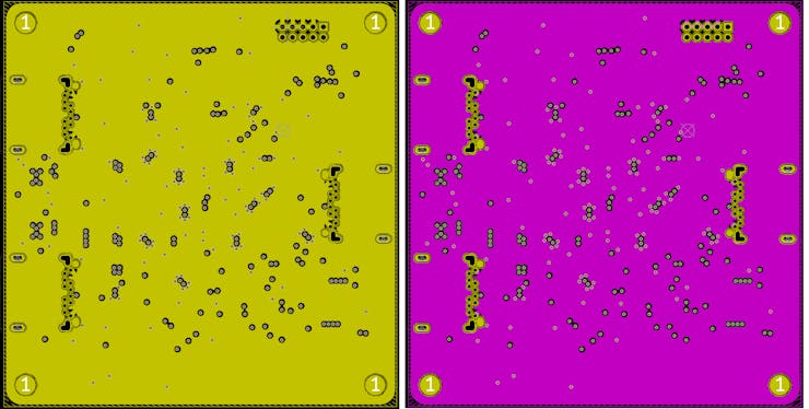 The USB 3.x signals were routed on both the top and bottom planes. To be able to use both sides of the board, I deliberately chosen an USB Type-C receptacles that has one set of signals as through hole pins (B side) and other set of signals (A side) as SMD legs.