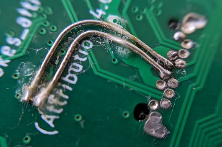 USB 2.0 Data Signals (+ and -) were swapped on the Out port - I fixed this by cutting the original traces, and replacing them with some patches made from thin coated wire: