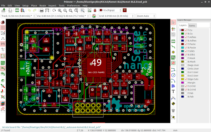 I constantly used the 3D Viewer to ensure nothing is wrong with the resulting PCB. I also used the Design Rule Checker to check the design contains.