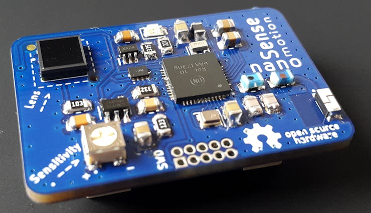 The device is based on the Kemet PL-N823-01 Pyroelectric Infrared Sensor and the OnSemi RSL10 Bluetooth Low Energy SoC.