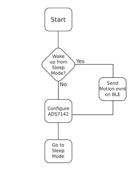 During this time the RSL10 BLE SoC is in sleep mode consuming just about 25nA. When motion is detected the RSL10 is waken up, and an event on Bluetooth Low Energy is advertised.