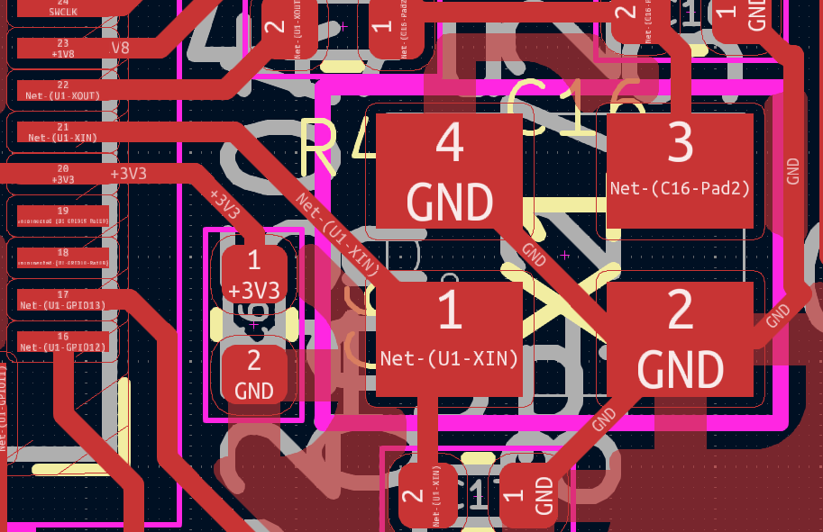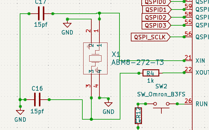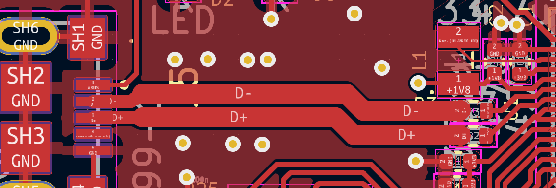 Another very important design consideration is USB connection. RP-2050 has on board USB interface that makes it easy to flash new firmware and/or store data. But there is always a layout guideline that must be followed. In this case the differential impedance between the two tracks (D+ and D-) should be 90 ohms.