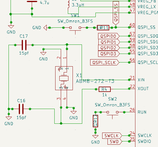 RP-2050 is an ARM Cortex-M33 based processor. It has several peripherals and comes in two different packages (QFN-60 and QFN-80) with pin counts. There is also an option to use RP-2054 which has inbuilt flash chip. This will reduce the component count and need for external flash memory circuit.