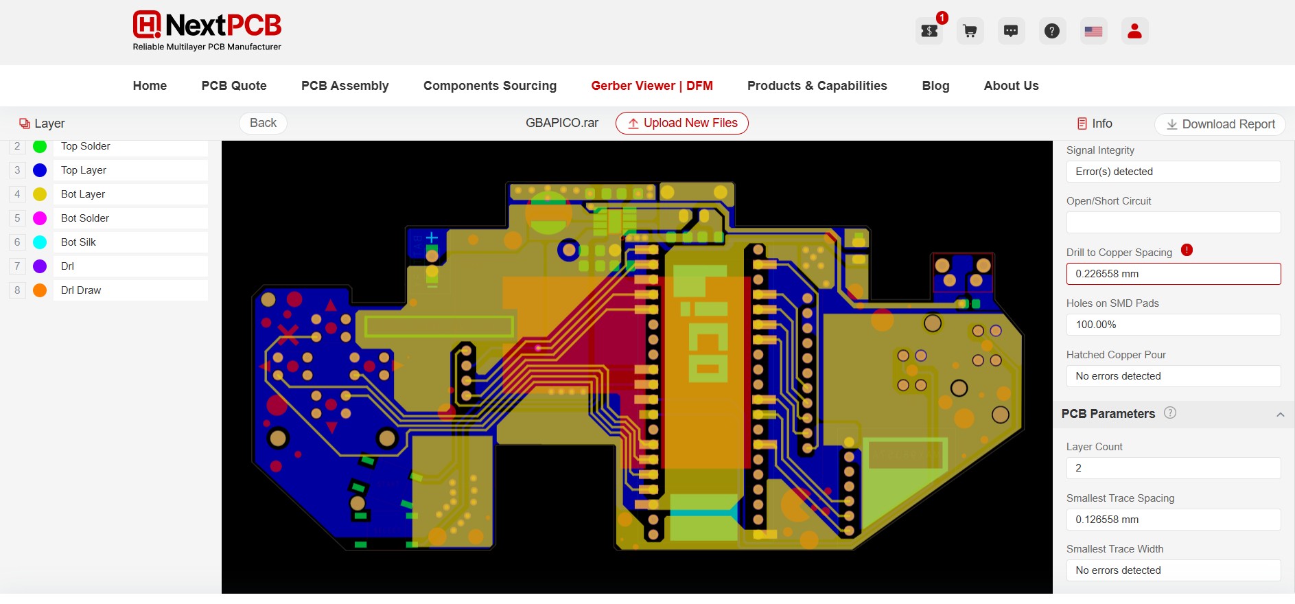 Also, NextPCB has its own Gerber Viewer and DFM analysis software.