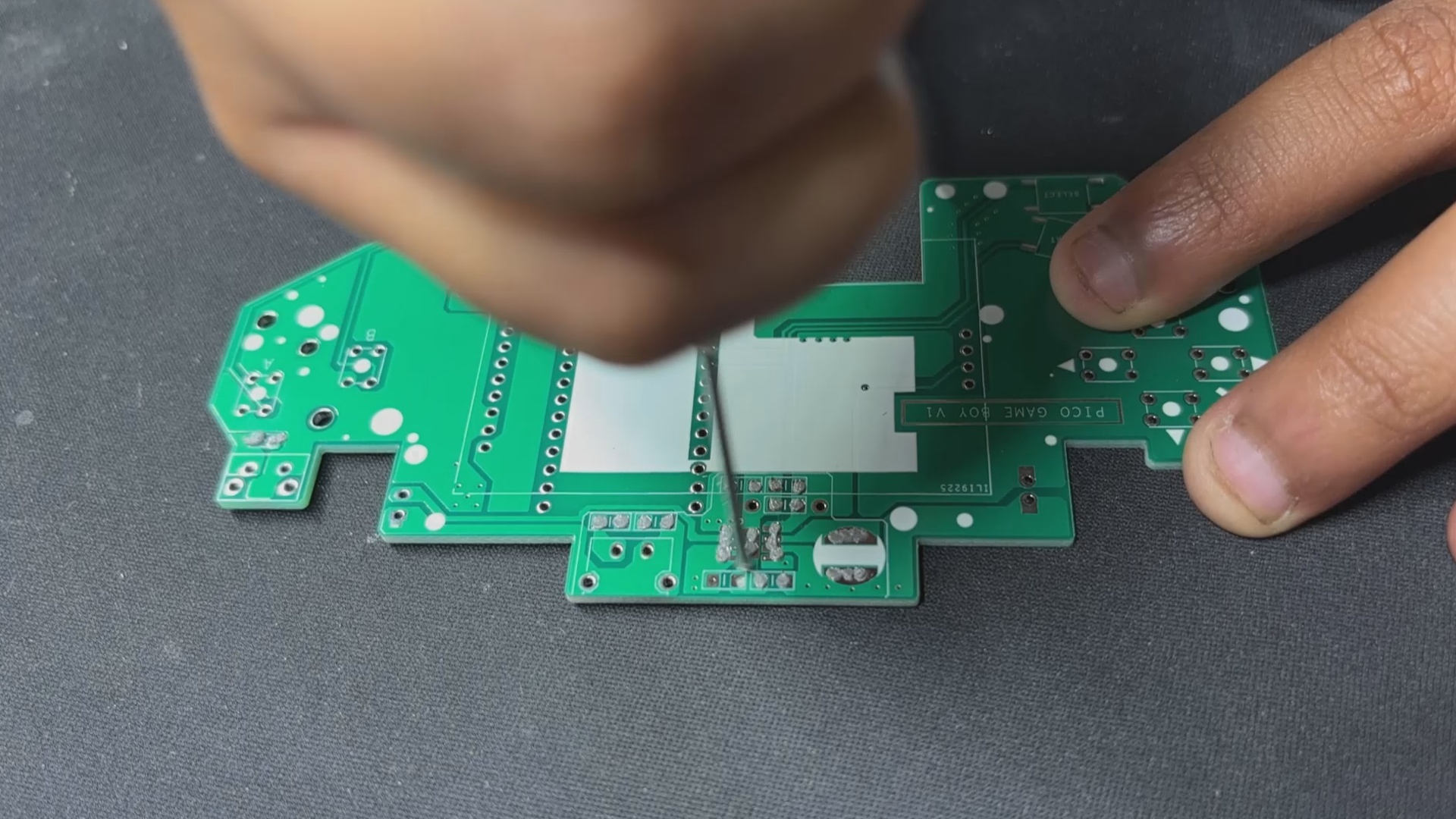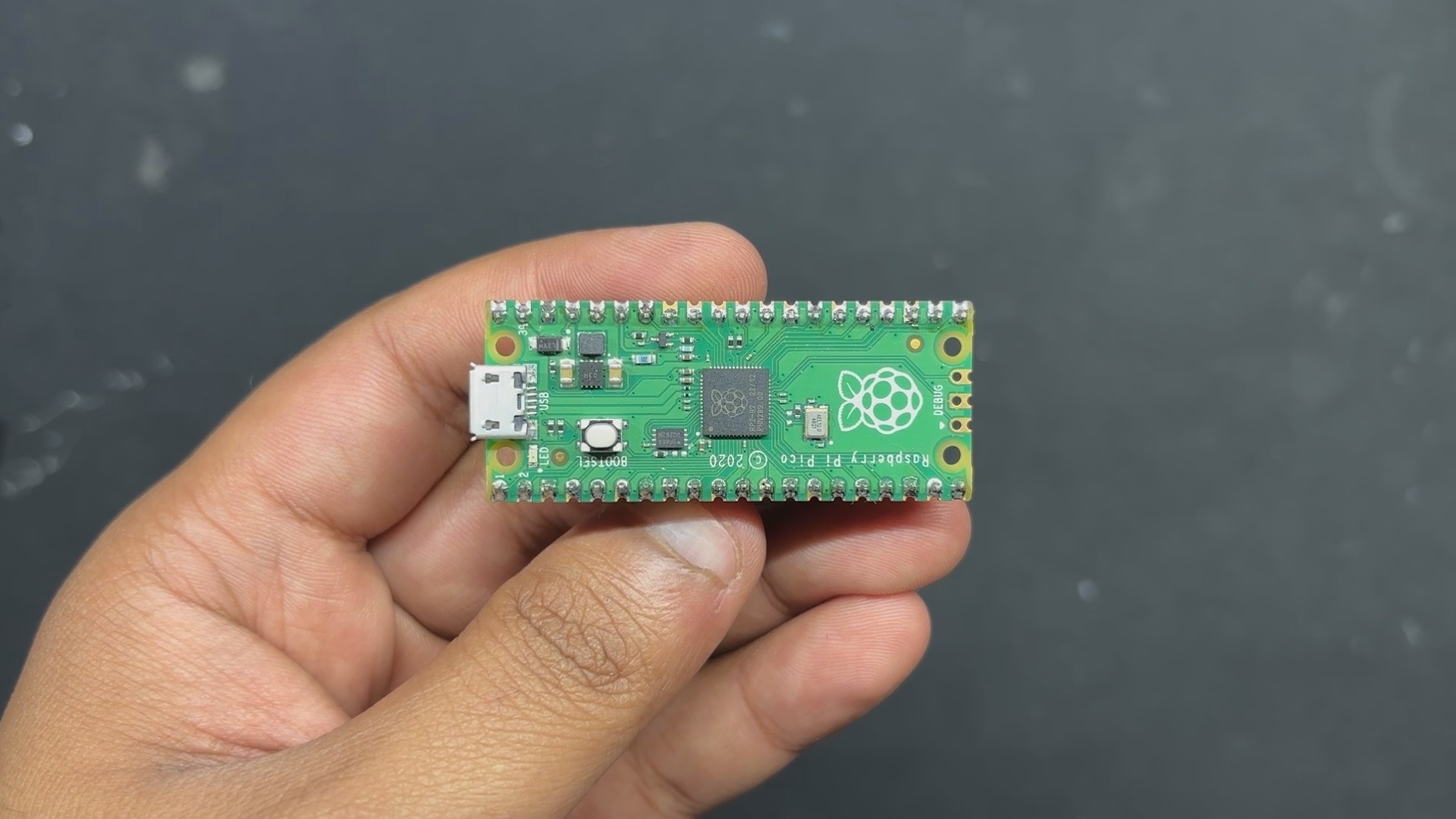The Raspberry Pi Pico is mounted next—positioned from the bottom side of the board, and soldered from the top to ensure a solid connection. We then use a nipper to trim the excess header pin leads, keeping the profile slim and clean.