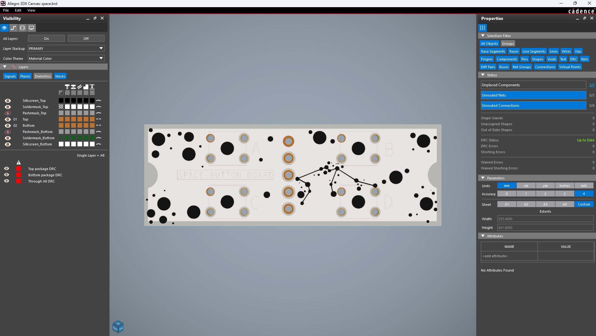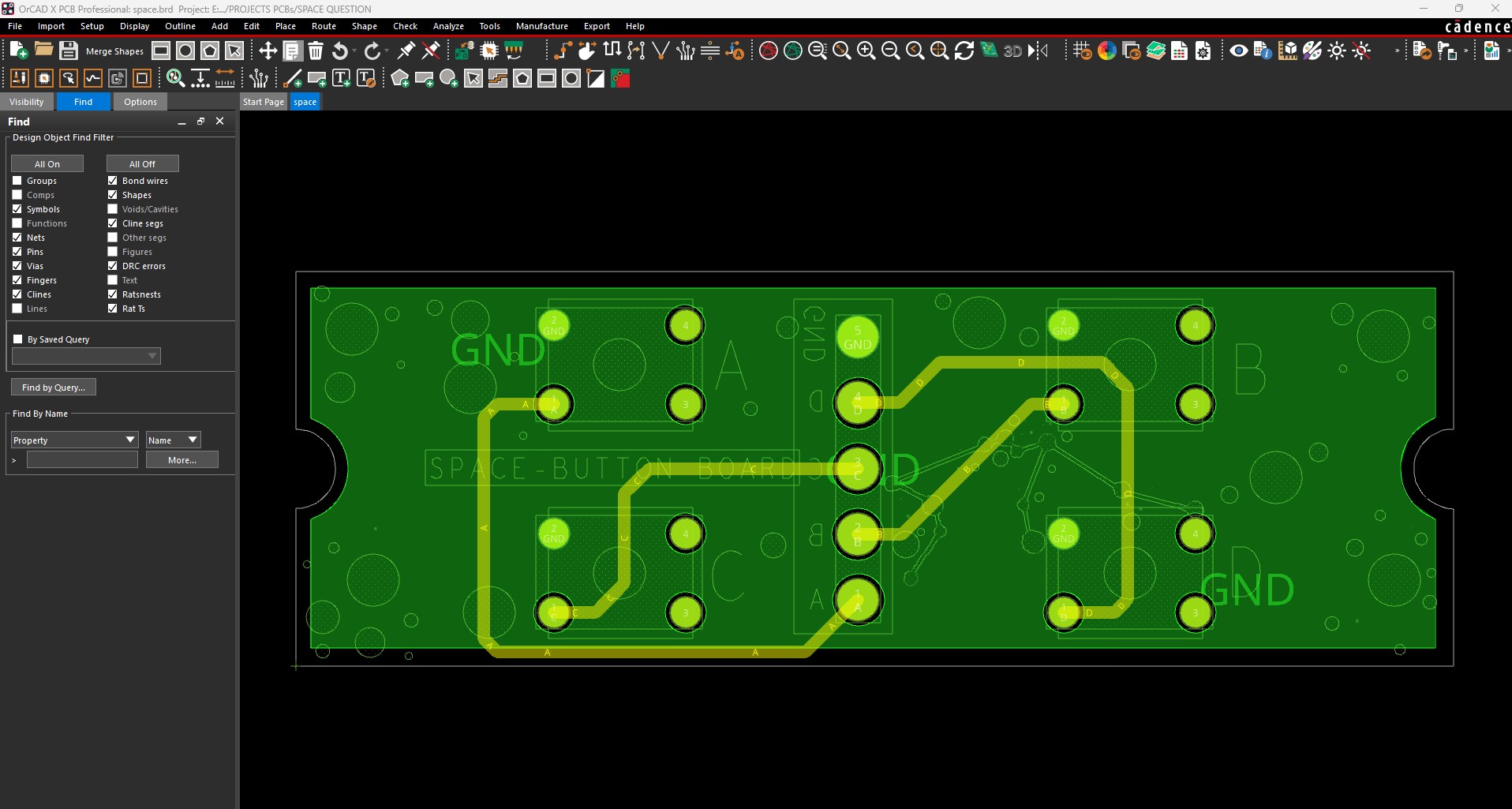For the PCB design, we used the outline from the CAD model and prepared a basic outline, then placed switches in their designated positions, connecting traces from switches to the CON5 port, and completed the board. For aesthetics, we added some graphics on the silkscreen layer of the PCB, which increases the aesthetic appeal of the board.