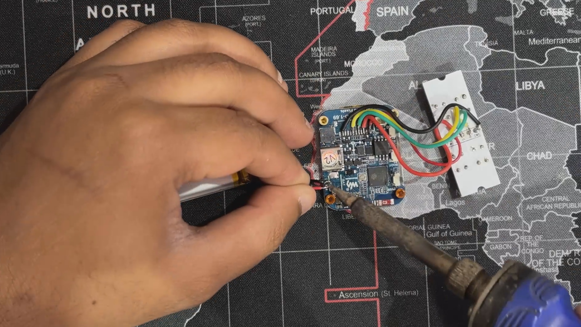 Next comes the power source assembly process; here we are using a 600 mAh 3.7 V LiPo cell whose positive and negative terminals we connect with the ESP32 Display's battery terminals using a soldering iron.